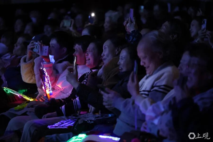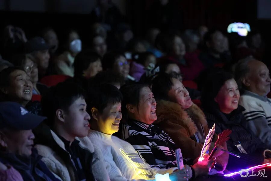 这可能是上海剧院有史以来老年观众最为集聚的演出,靠墙过道还有七旬子女推着九旬老人一起观演。一位爷叔表示:“我都是从秋秋这里了解国家大事,感觉自己没被时代抛弃,内心不再寂寞。”
