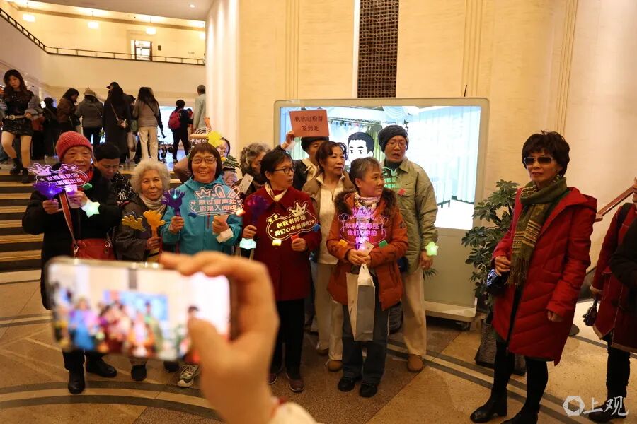 进入剧场内老人们忙着拍照打卡,为自己留存纪念,也向身边亲友及时“炫耀”。