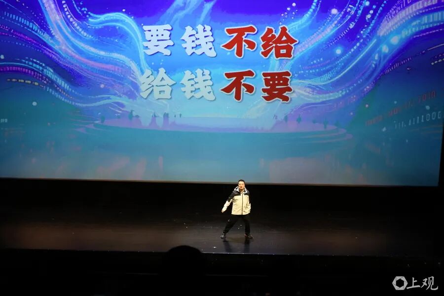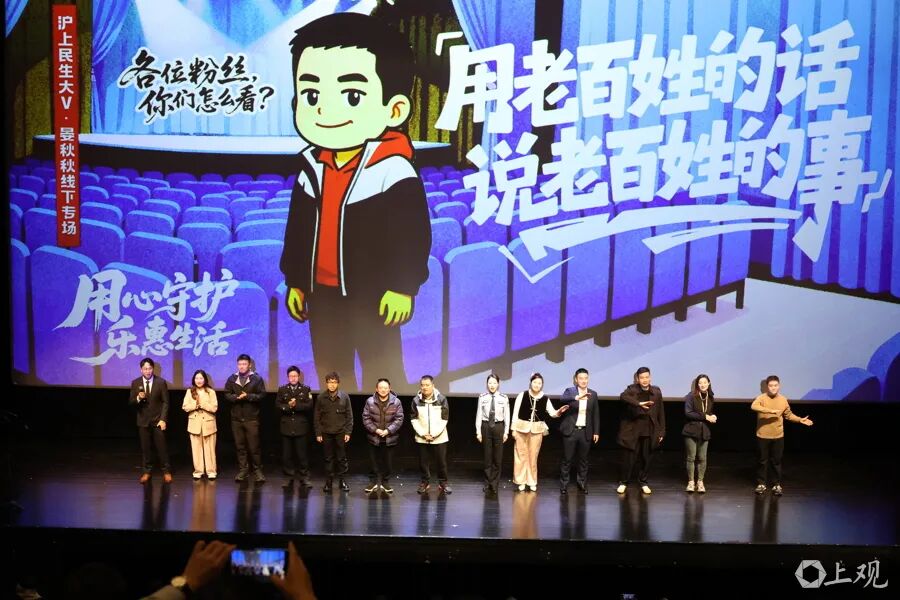 作为此次演出的核心人物,民生“大V”、新民晚报资深记者晏秋秋,凭借其深耕民生领域多年积累的亲和力与表达力,成为舞台上最亮眼的焦点。
