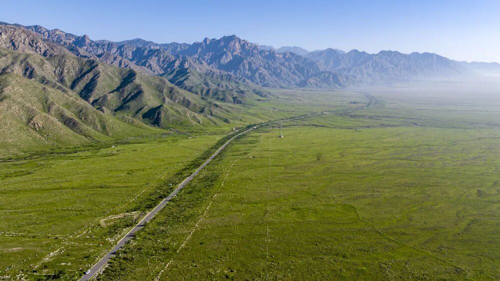 2025年7月29日,随着降水增多,昔日戈壁荒滩的贺兰山东麓冲积扇如今绿意盎然。新华社记者 王鹏 摄