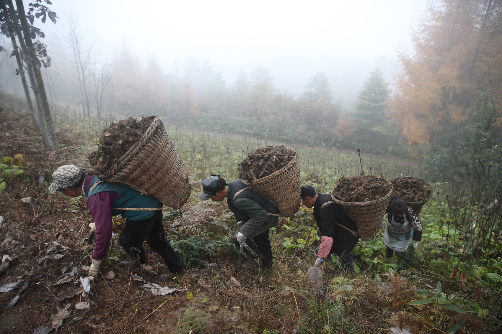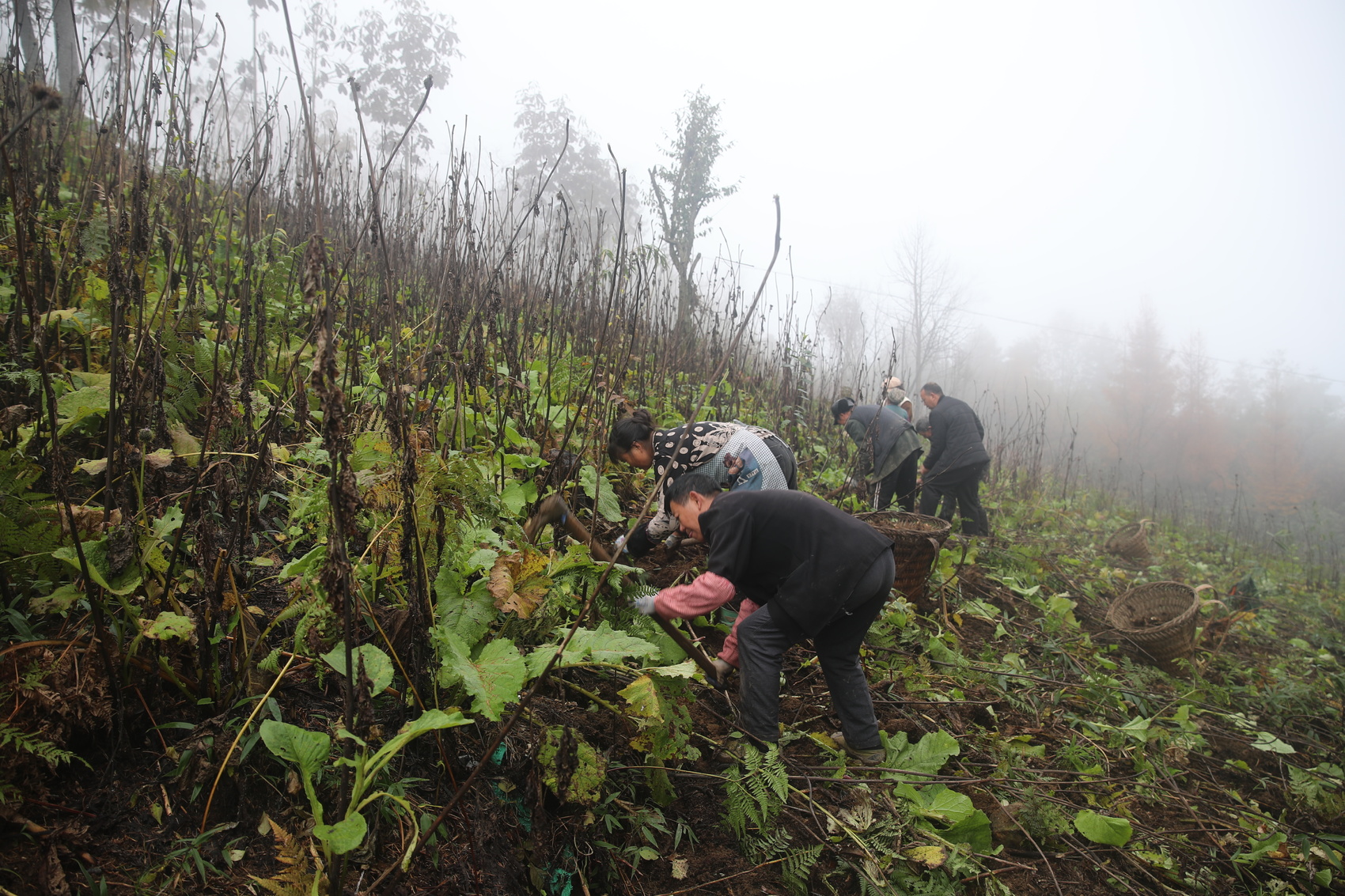 在海拔2000米的宣汉县龙泉土家族乡罗盘村万亩木香种植基地,只见村民们在田间来回穿梭,将一棵棵长势喜人的木香从土里翻出、分拣、装袋……田间地头呈现出一派繁忙的丰收景象。