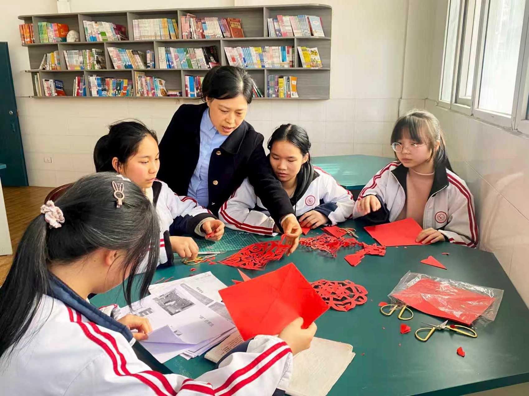 达州青年教师组织学生参加手工制作。