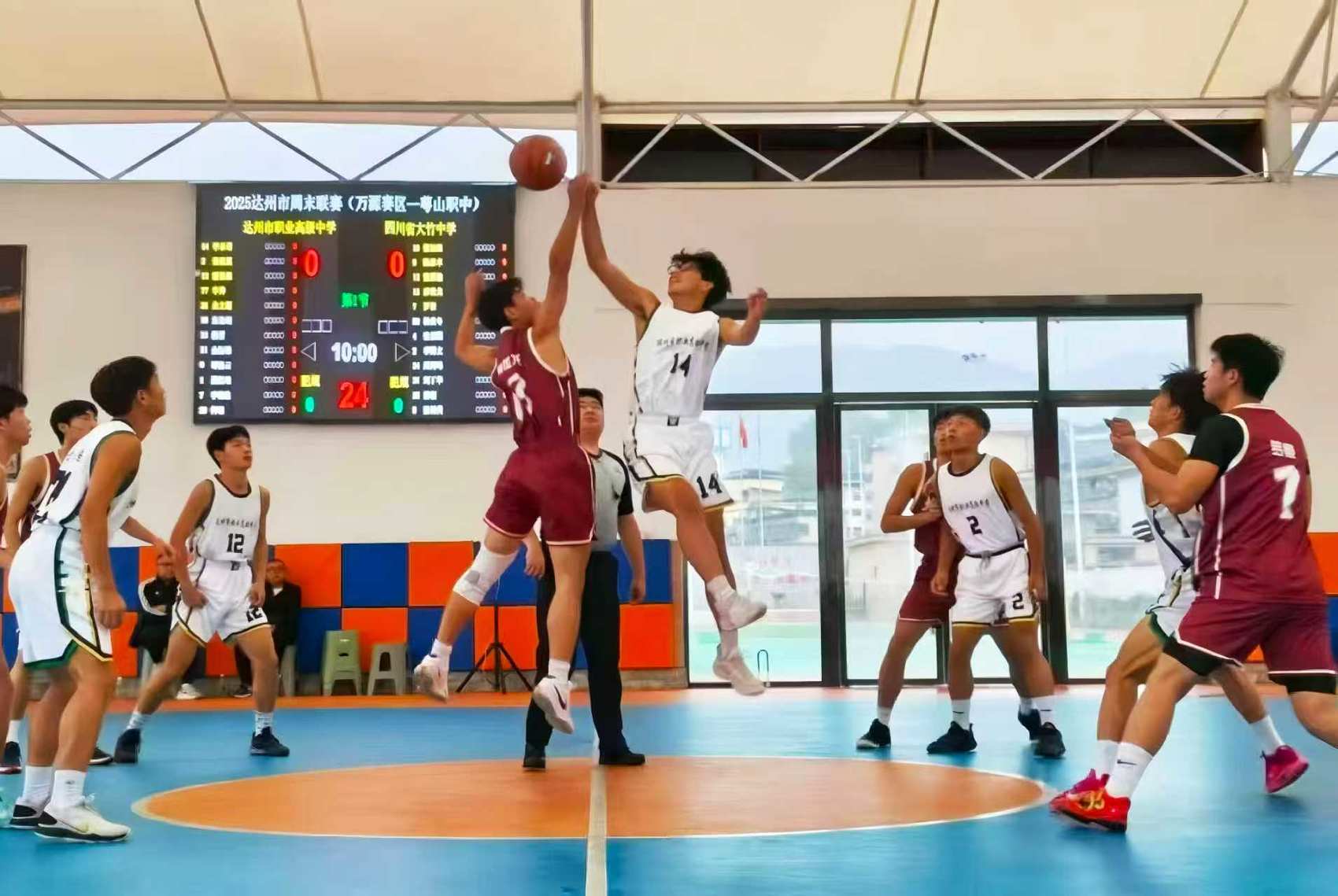 达州学子正在开展校园篮球赛。