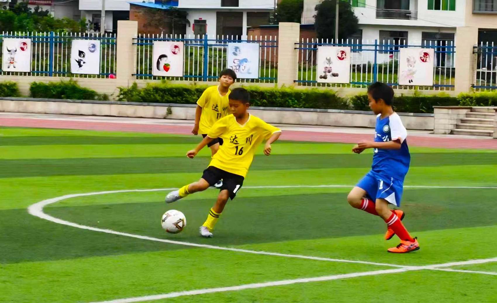 达州青少年在足球场上拼搏。