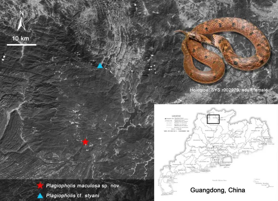 近日,中山大学王英勇课题组在南岭国家公园候选区天井山片区(现广东省天井山林场)发现并描述一蛇类新物种——南岭颈斑蛇(Plagiopholis maculosa),相关成果发表于国际动物学期刊Zoosystematics and Evolution。该新种的发现进一步凸显了南岭山地在华南生物多样性保护格局中的重要性。