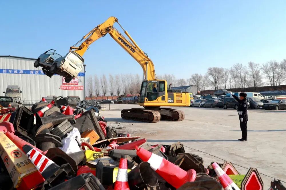 伴随着工程机械的阵阵轰鸣,各式各样的挡车桩、地锁等占位器具以及僵尸车被依次碾压、拆解,最终化为废铁。这是哈尔滨市公安局在“还位于民”专项整治行动中,对清理的非法占位障碍物及车辆进行的集中公开销毁。万余件曾长期“霸占”公共停车资源的路障被彻底销毁,彰显了冰城公安坚决整治乱象、释放公共资源、服务保障民生的坚定决心。
