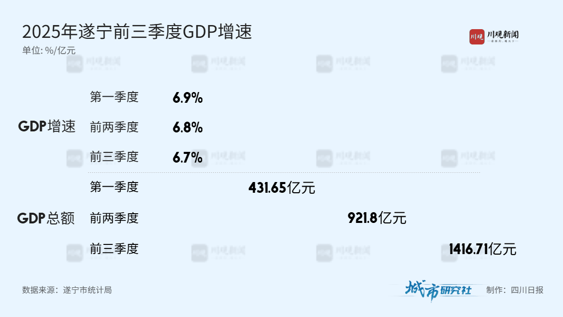 今年前三季度,眉山、遂宁、自贡、内江,分别以7.1%、6.7%、6.6%、6.4%的GDP增速跑进全省前五。