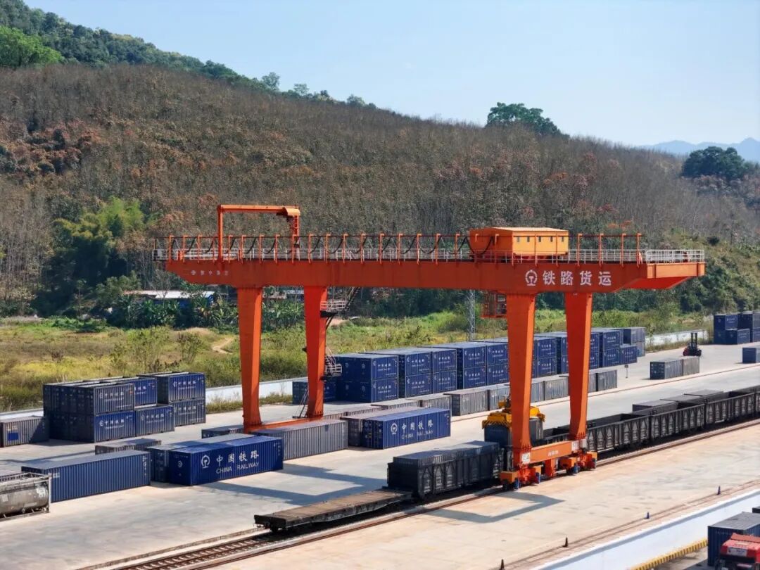 位于中老两国边境的磨憨铁路口岸,客货运输呈现一派繁忙景象(纳建博 摄)