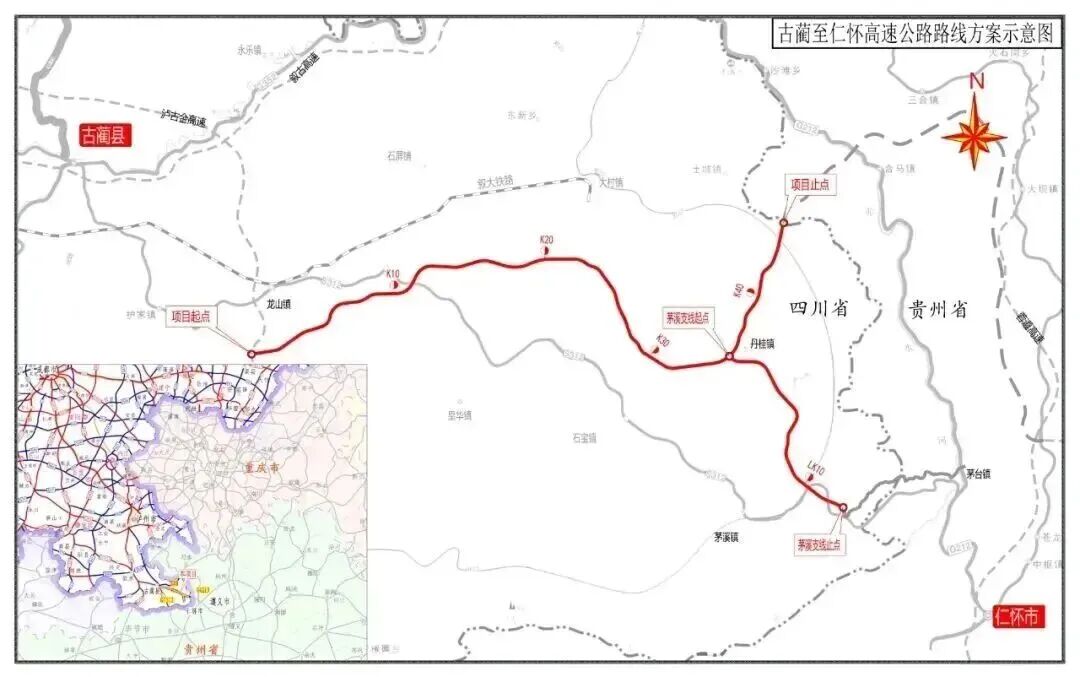 古仁高速全线均位于泸州市古蔺县境内,由主线与茅溪支线组成。