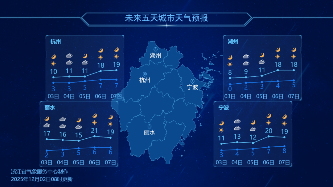 伴随冷空气进一步渗透,接下来气温将大打折扣,尤其浙北,今天一出门,降温带给我们的寒意就很明显了。预计浙北白天最高气温仅10℃出头,寒意萧瑟。浙南也会降到15℃上下,云系增厚,暖意消失。