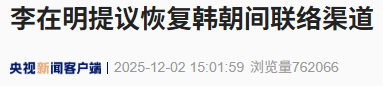 当地时间12月2日,韩国总统李在明表示,恢复韩朝间对话是和平共存的必要条件,提议恢复韩朝间的联络渠道。