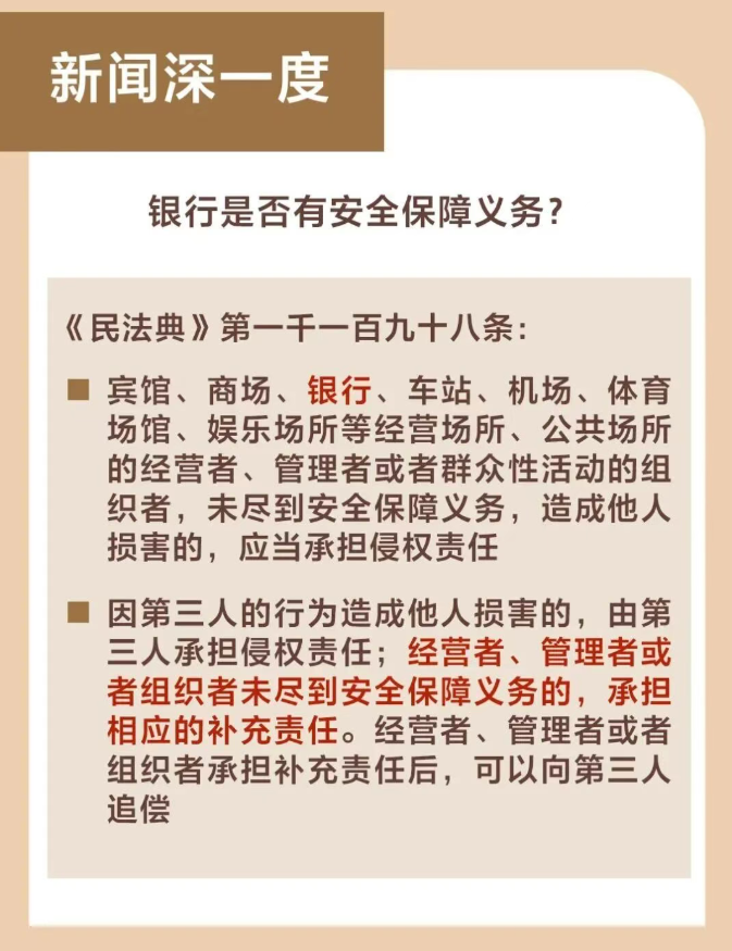 “事件发生后,我行高度重视,积极配合相关部门开展案件调查,相关负责人多次探望客户并进行慰问。我行支持客户通过合法途径维护自身权益。感谢社会各界关注监督,我行将持续强化网点安全管理与应急处置能力,切实保障客户人身及财产安全。”农行中牟白沙支行表示。