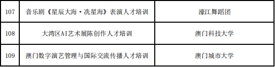 其中,中国文化传媒集团有限公司报送的“艺术新媒体运营管理人才培训”“舞台艺术作品文艺批评人才培训”入选艺术人才培训项目。