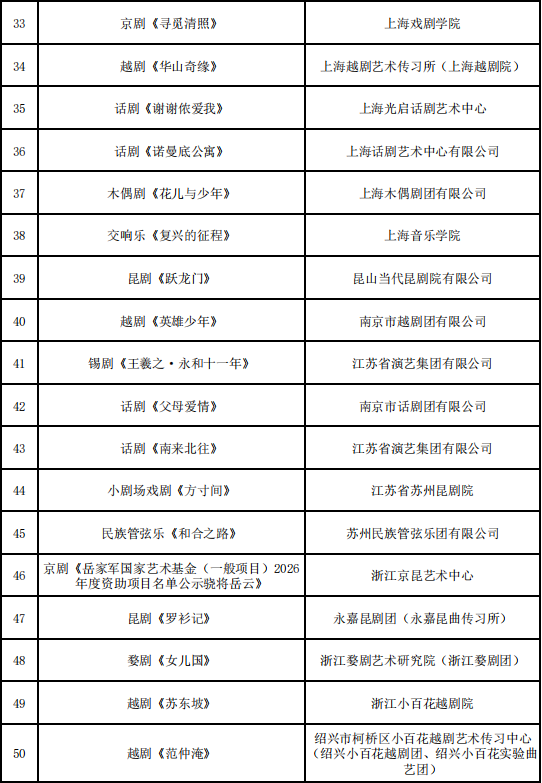 以下内容为国家艺术基金(一般项目)2026 年度资助项目名单↓↓↓↓