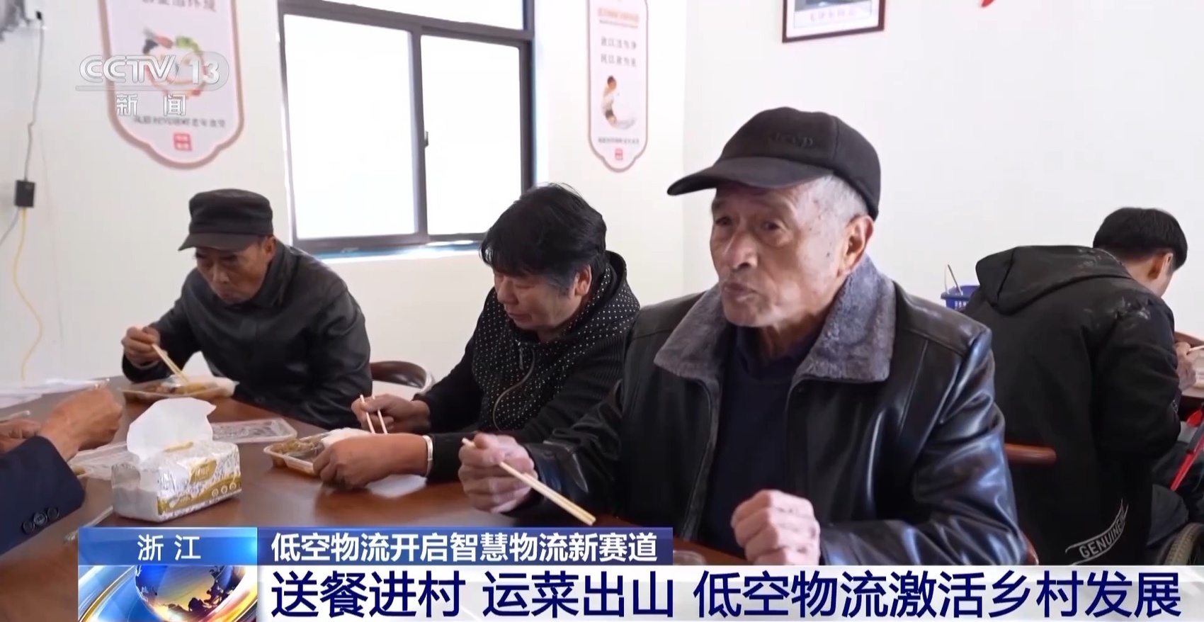 中午时分,浙江桐庐县横村镇凤联村乌善岭自然村上空传来阵阵螺旋桨声。一架无人机越过山峦,稳稳降落在村前空地,将热腾腾的饭菜送至老人手中。