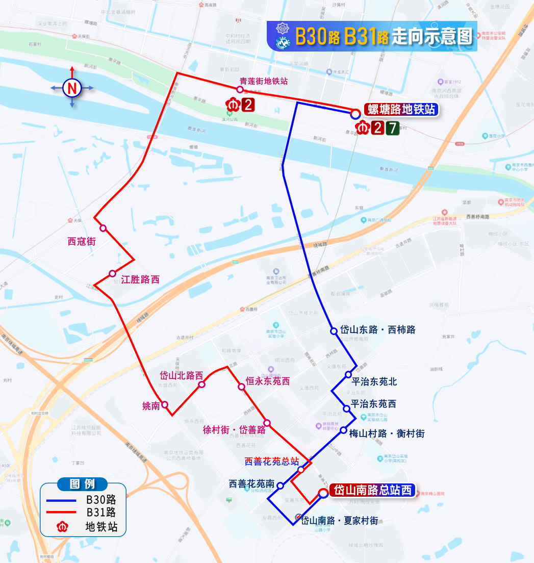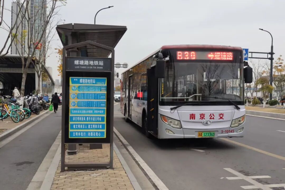 B30路(东线)主打“快速接驳”,走向紧贴梅山村街沿线,串联起西善花苑、平治东苑等多个人口密集小区,直接对接地铁2号线、7号线螺塘路地铁站,高峰时段发车间隔加密,早晚高峰通勤族不用再“掐点等车”。