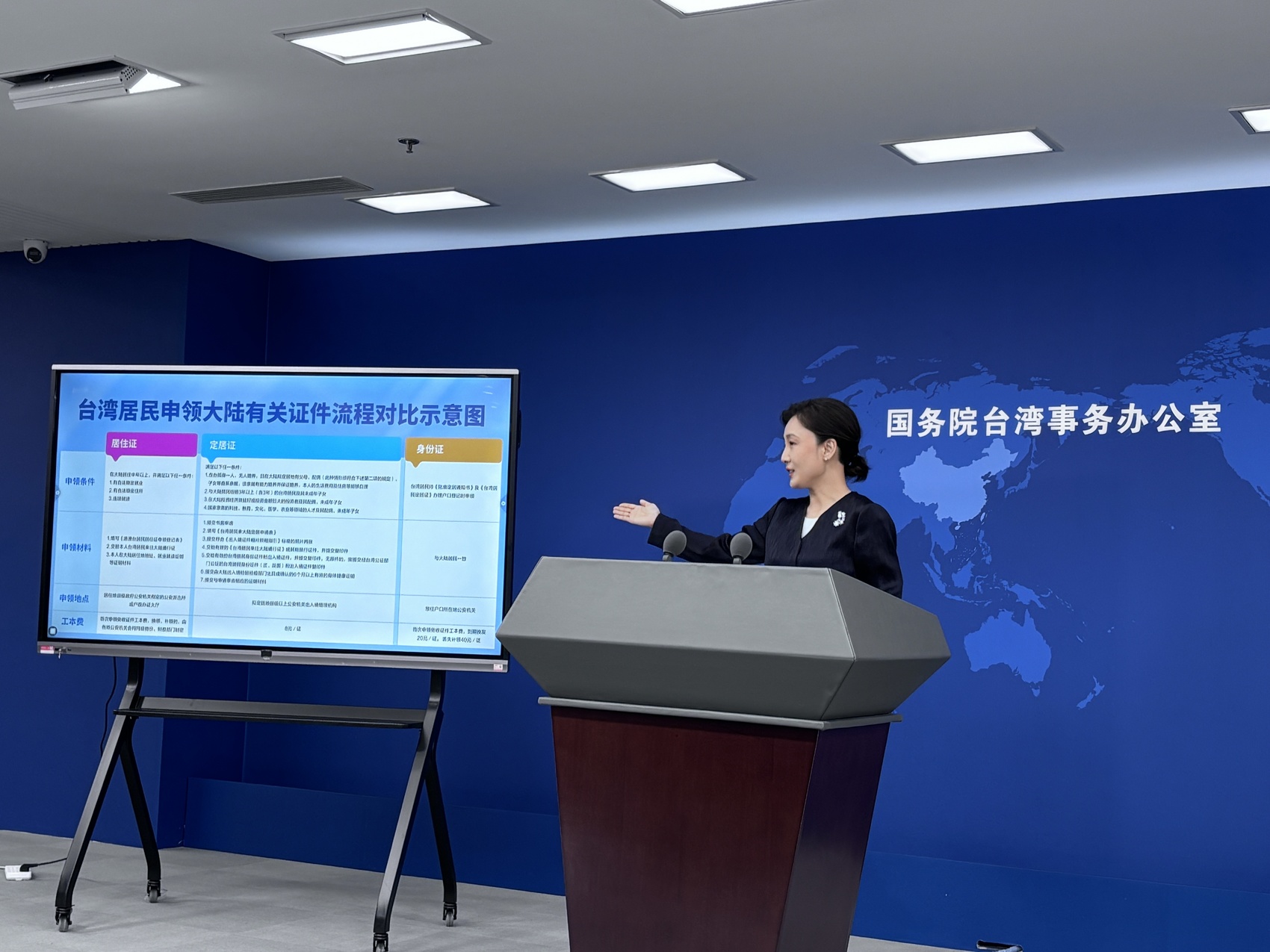 国务院台办发言人张晗在记者会上介绍,台湾居民自愿申领大陆身份证件是其享有的合法权利。为防止别有用心人士混淆视听、歪曲解读,方便台胞申领大陆有关证件,借此机会我就台湾居民申领大陆居住证、定居证和身份证有关申领条件、流程和所需材料作完整准确说明。我们精心制作了图表,以助大家更好了解情况。