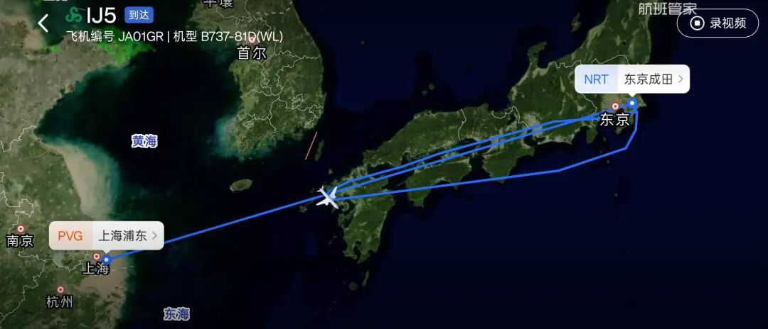 航班管家APP显示,该航班的航次已变更为IJ005D,计划于当地时间2日上午10时由东京成田机场起飞,当地时间12时40分落地上海浦东机场。