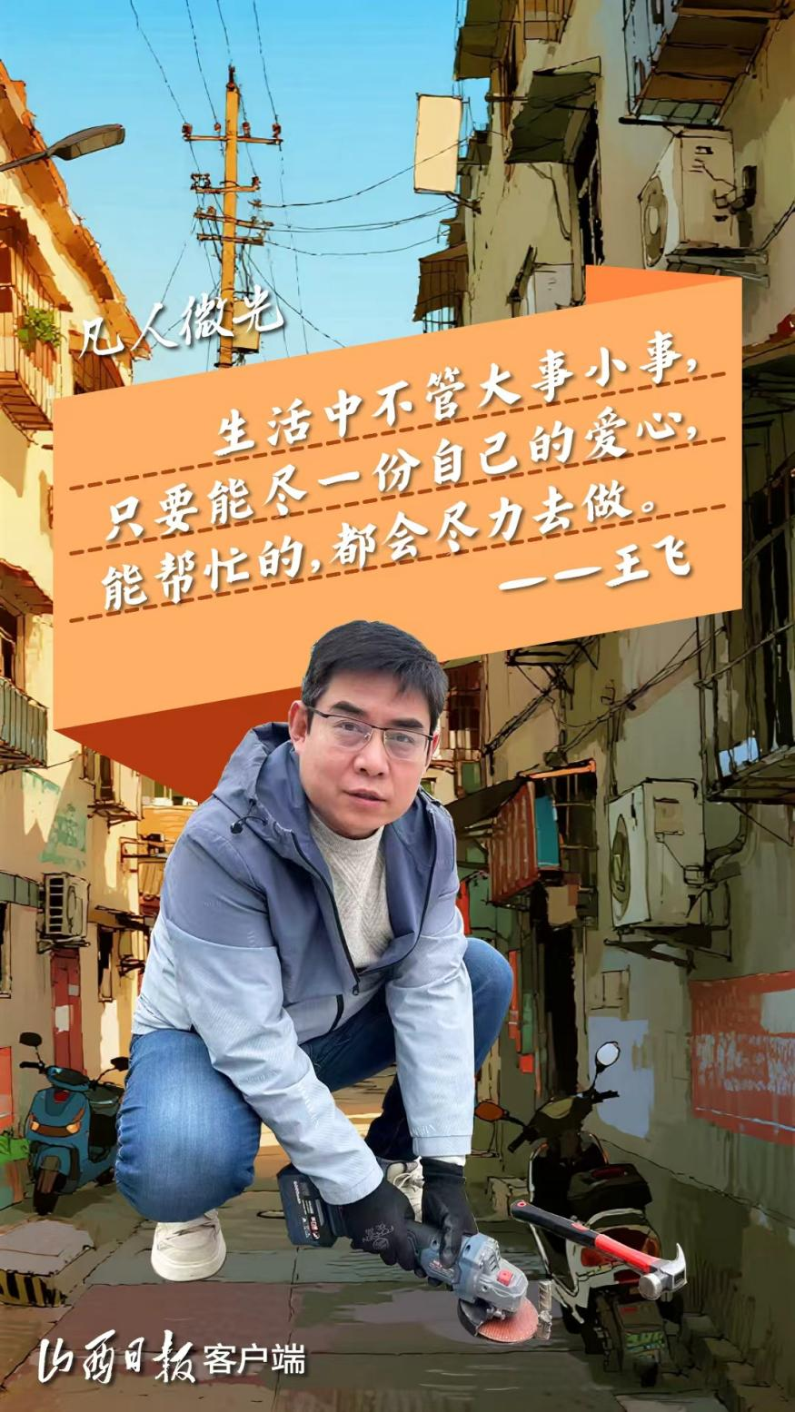 11月28日,山西日报微信公众号一篇题为《暖心!他用一把角磨机,守护路人平安》的报道,让这位“铲钉侠”走入公众视野。身为一名普通的全屋定制从业者,王飞利用工作间隙默默清理街面上遗留的地钉,及时消除安全隐患,守护路人平安。