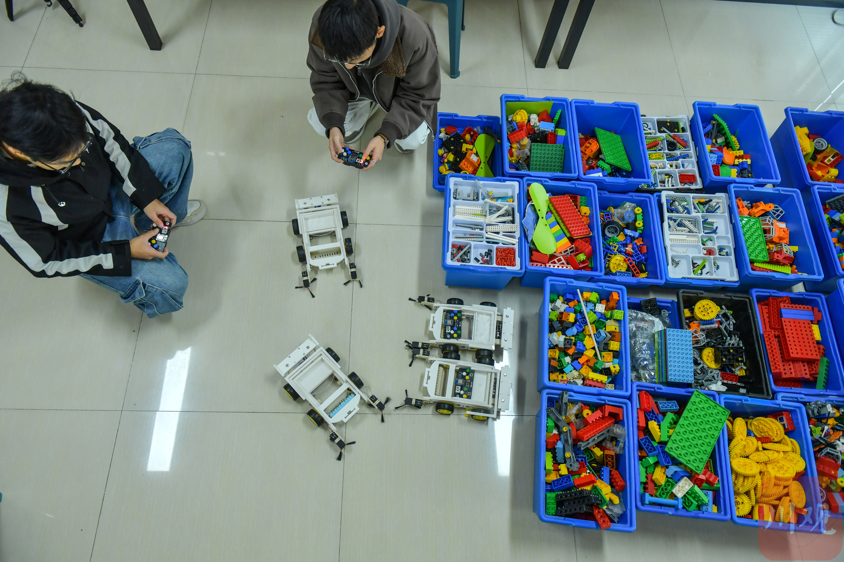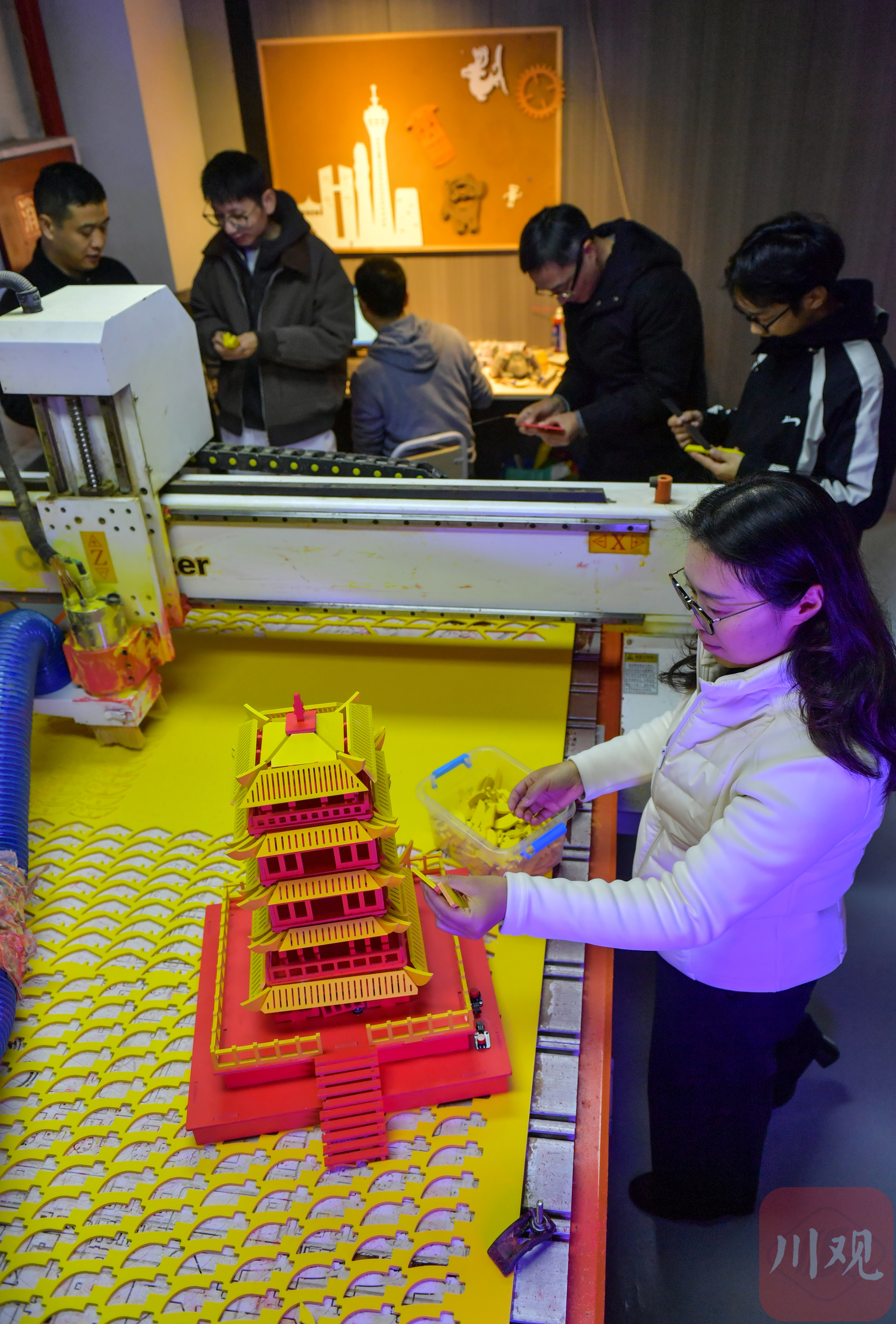 2025年12月2日,在位于四川省成都市双流区的电子科大科技园(天府园)成电创客基地,科创团队成员对研发的“智能黄鹤楼”进行零部件的制作和讨论。