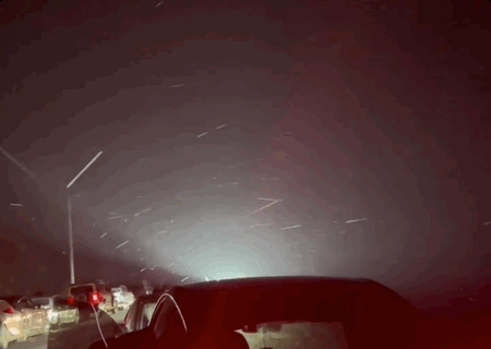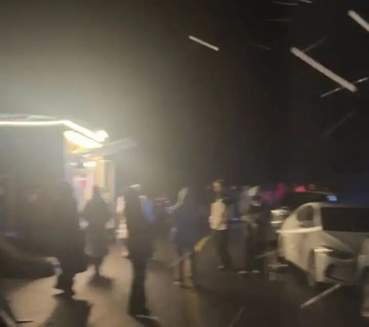 在网友“养猪——梁朝伟”发布的视频中,海拔约1360米的临安太子尖驿站上,雪花漫天飞舞,只有借助附近集装箱店铺的灯光、汽车的大灯、驴友们的手电,才能看清那纷纷扬扬飘落的,确实是雪。