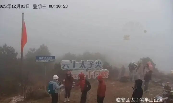临安太子尖迎来今冬首场降雪,虽仅“偏爱”海拔较高的太子尖,且为零星小雪粒,但依旧点燃了不少驴友的冬日热情,不少驴友,登顶太子尖见证临安的第一场雪。