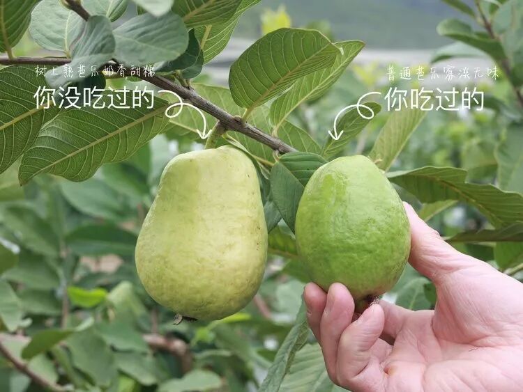 而这颗漳州芭乐,我们坚持让它在树上挂到八成熟以上,等糖分和香气积累到巅峰时,才舍得摘下。