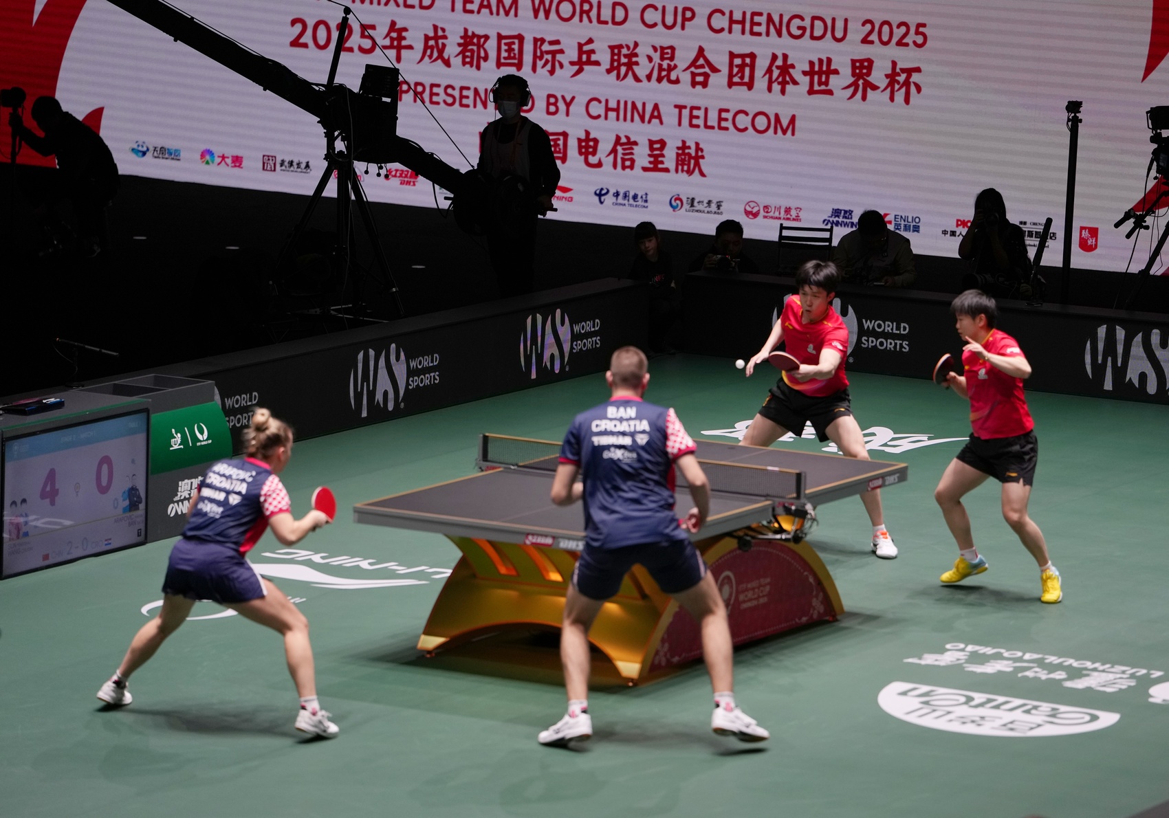 12月3日,2025年成都国际乒联混合团体世界杯进入第二阶段循环赛。在13:00进行的首场比赛中,卫冕冠军中国队以总比分8比0 完胜克罗地亚队,顺利取得第二阶段开门红。