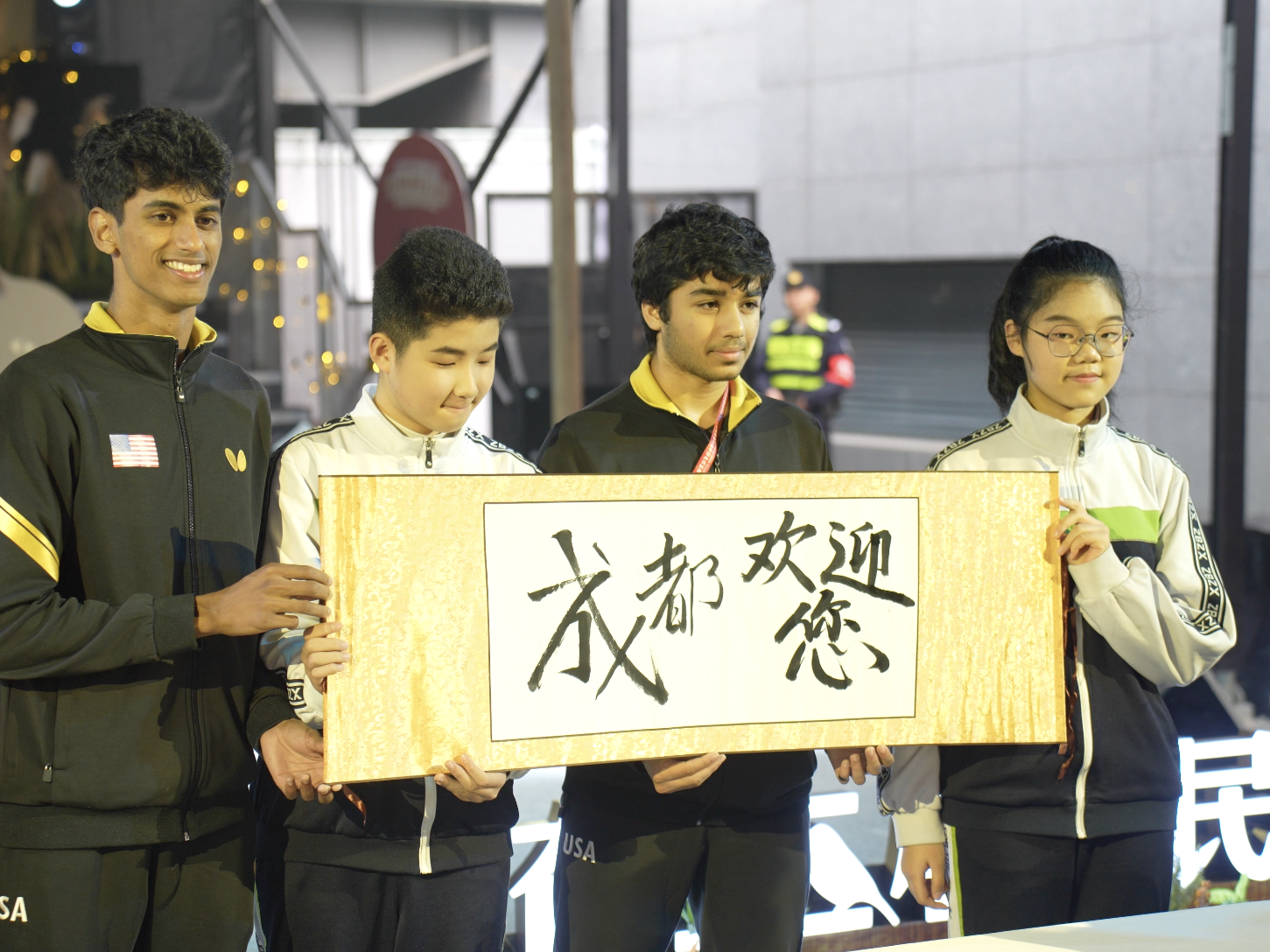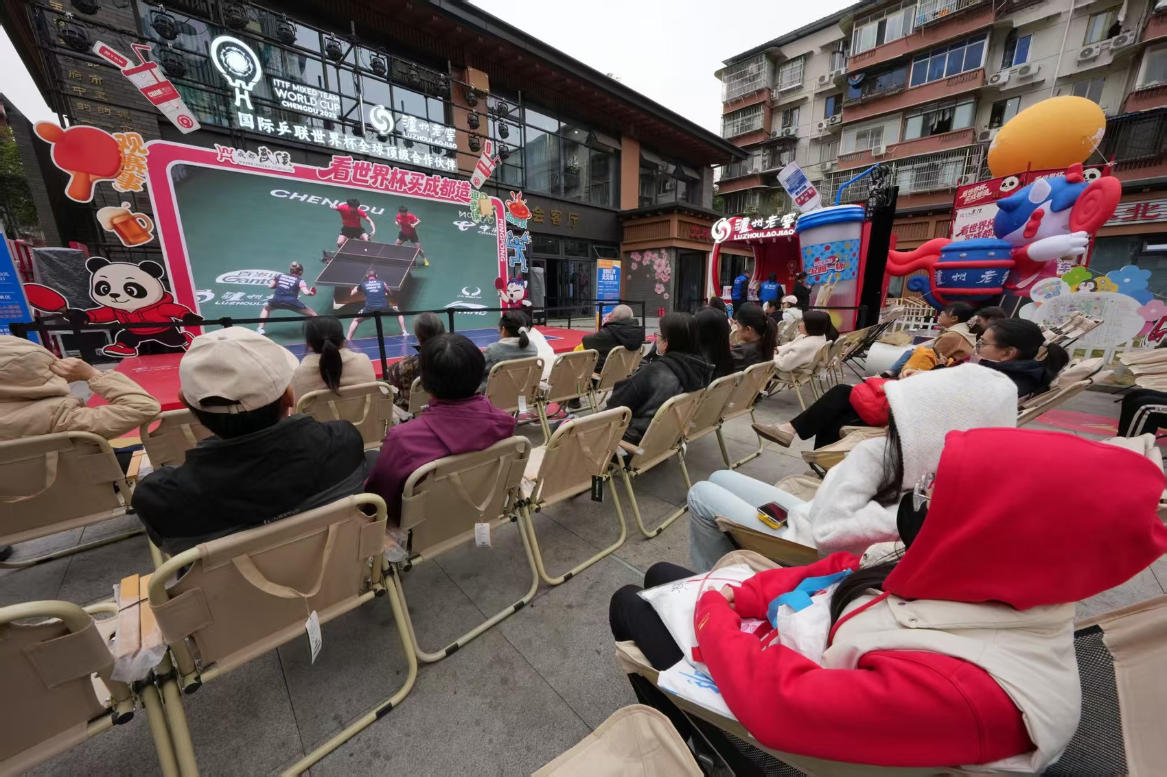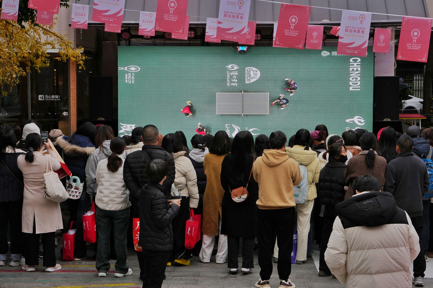 12月3日,2025年成都国际乒联混合团体世界杯进入第二阶段比赛,13:00,成都世界杯公园玉林社区广场人声鼎沸。