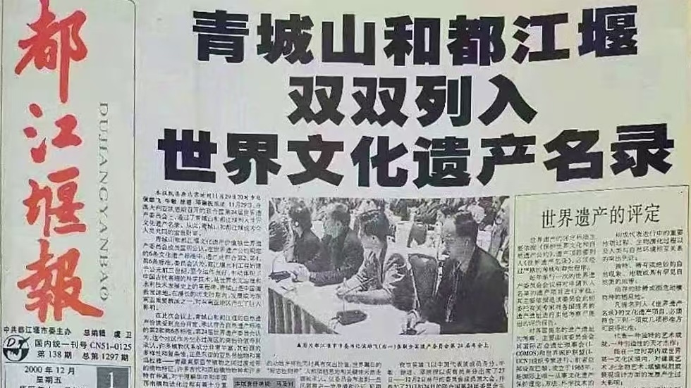 2000年11月29日,联合国教科文组织第24届世界遗产委员会会议在澳大利亚凯恩斯举行,青城山—都江堰被列入《世界遗产名录》。