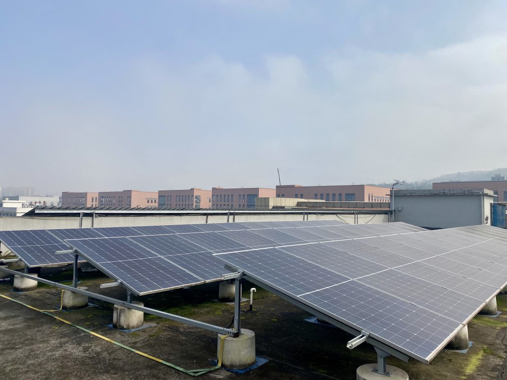改变源于去年10月该公司试运行的屋顶分布式光伏项目。这是川渝高竹新区目前最大的分布式光伏项目,总装机容量1200千瓦,最高月发电量达20万度,夏季用电高峰时,可支撑整个厂区三分之一的用电量。“预计今年的年产值将提高20%。”陈艳说。