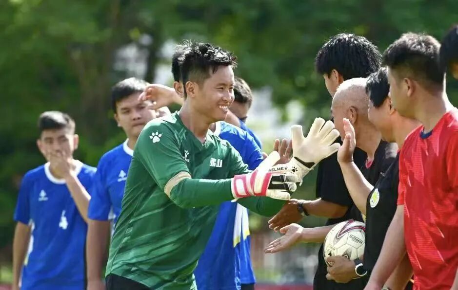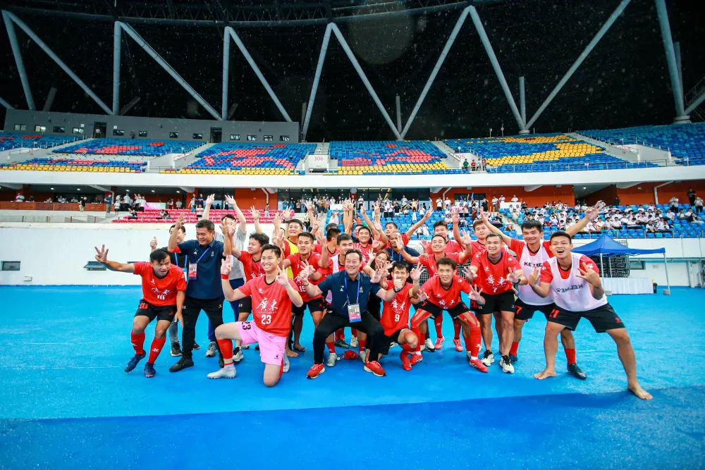 ↑石金飞(左四)与杨奥富(左三)获得金牌