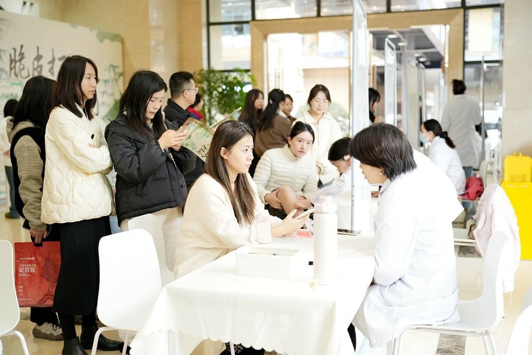 手持“游园指南”的年轻白领穿梭在各个健康站点之间:在“固本站”辨识体质,在“回血站”体验耳穴调理,在“焕颜站”咨询皮肤问题,还能在“暖阳站”玩一把中药猜谜游戏。集满能量印章后,大家前往“梧桐里健康会客厅”进行体态评估、运动指导、兑换养生茶包、聆听华西专家健康公开课……一个贴近楼宇职工的健康服务空间初现雏形。