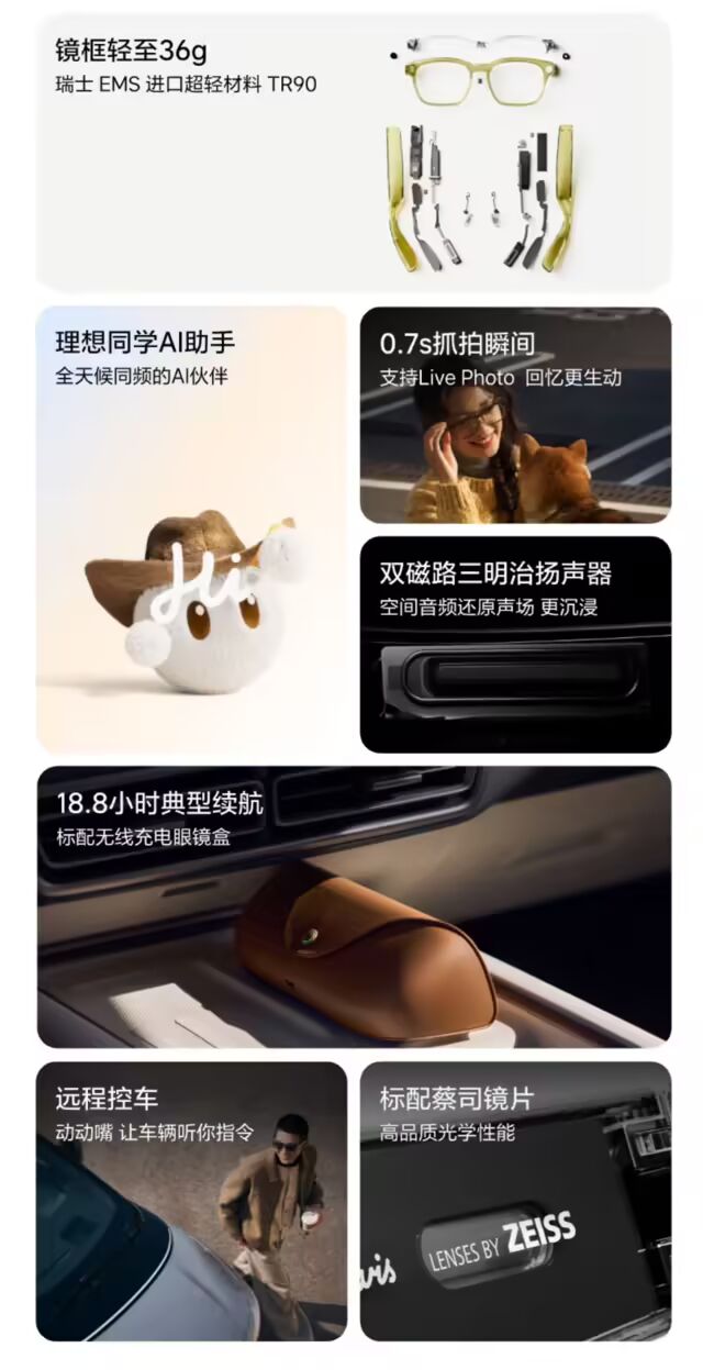 理想首款AI眼镜“Livis”今(12月3日)晚正式发布,该产品重量仅为36克,标配蔡司防蓝光光学镜片,续航可达18.8小时,售价为1999元,国补1699元起,最快当天发货。