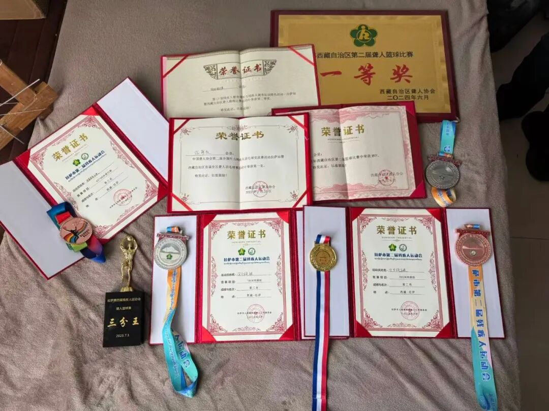 图为次旦顿珠参加各种体育赛事获得的证书。深壹度工作室 摄