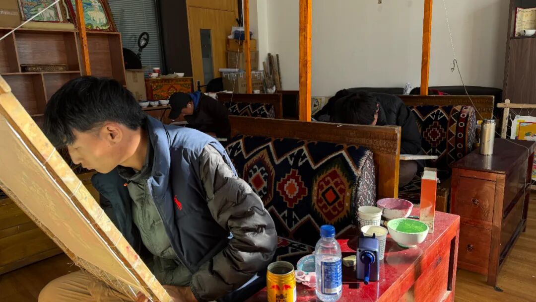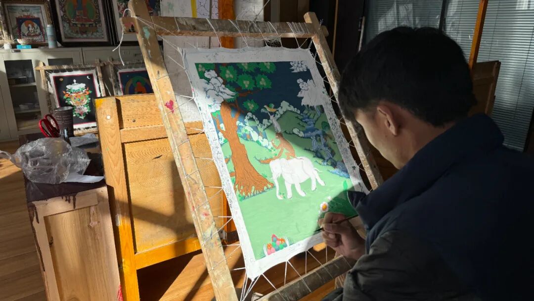 旦增毫不犹豫地报名参加了唐卡绘画培训班。经过数月的系统学习,他笔下的唐卡已初具形韵。“将来,我想拥有一间自己的工作室,一直画下去。”