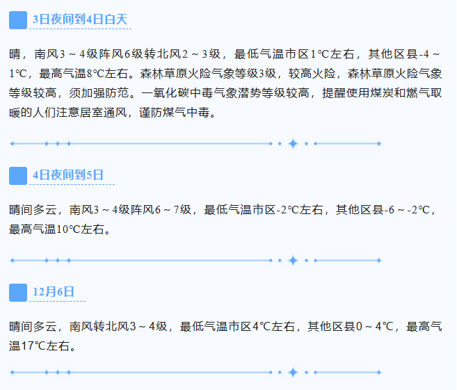 最低气温:内陆地区-6~-3℃,沿海地区-1℃左右。