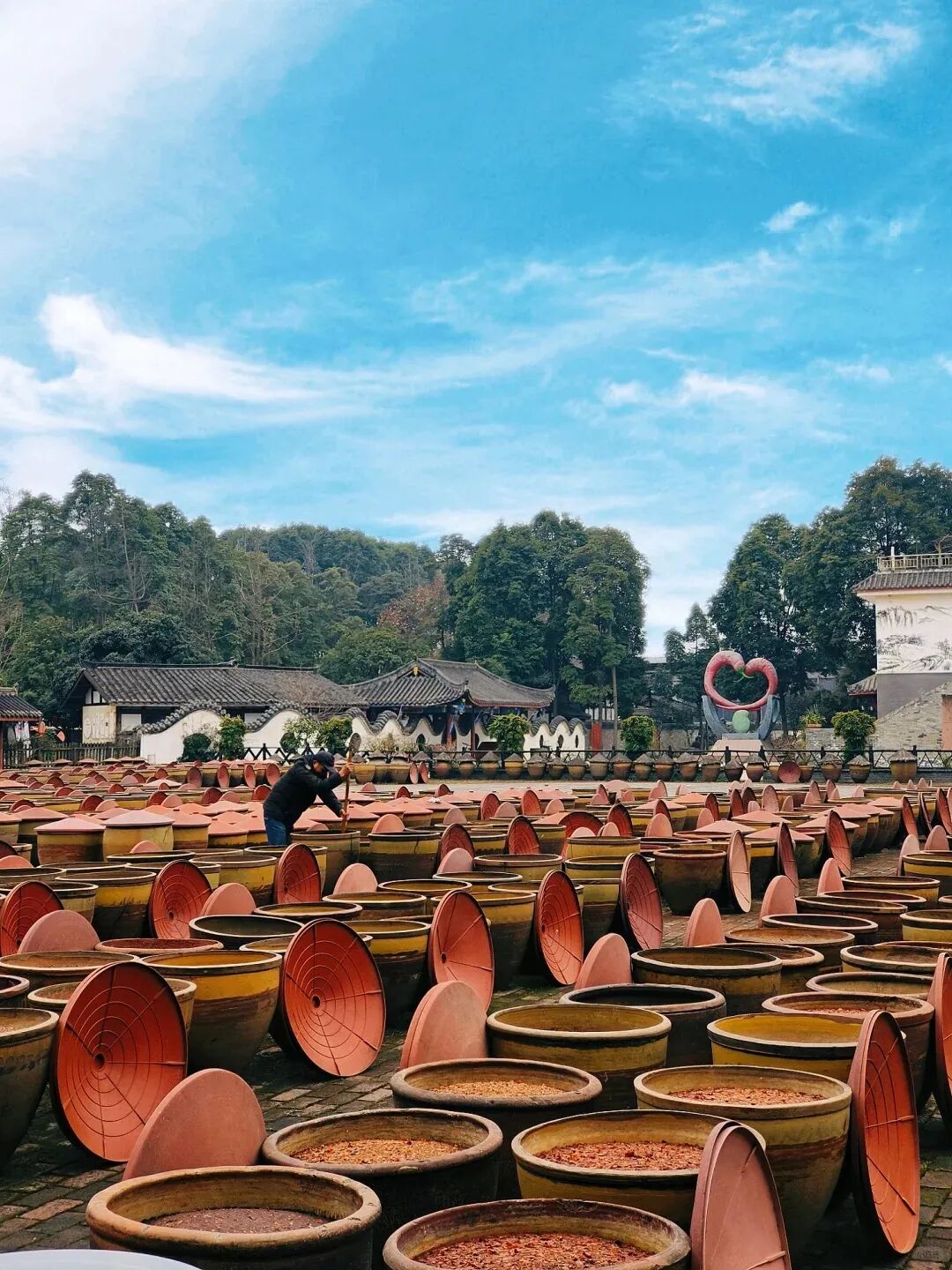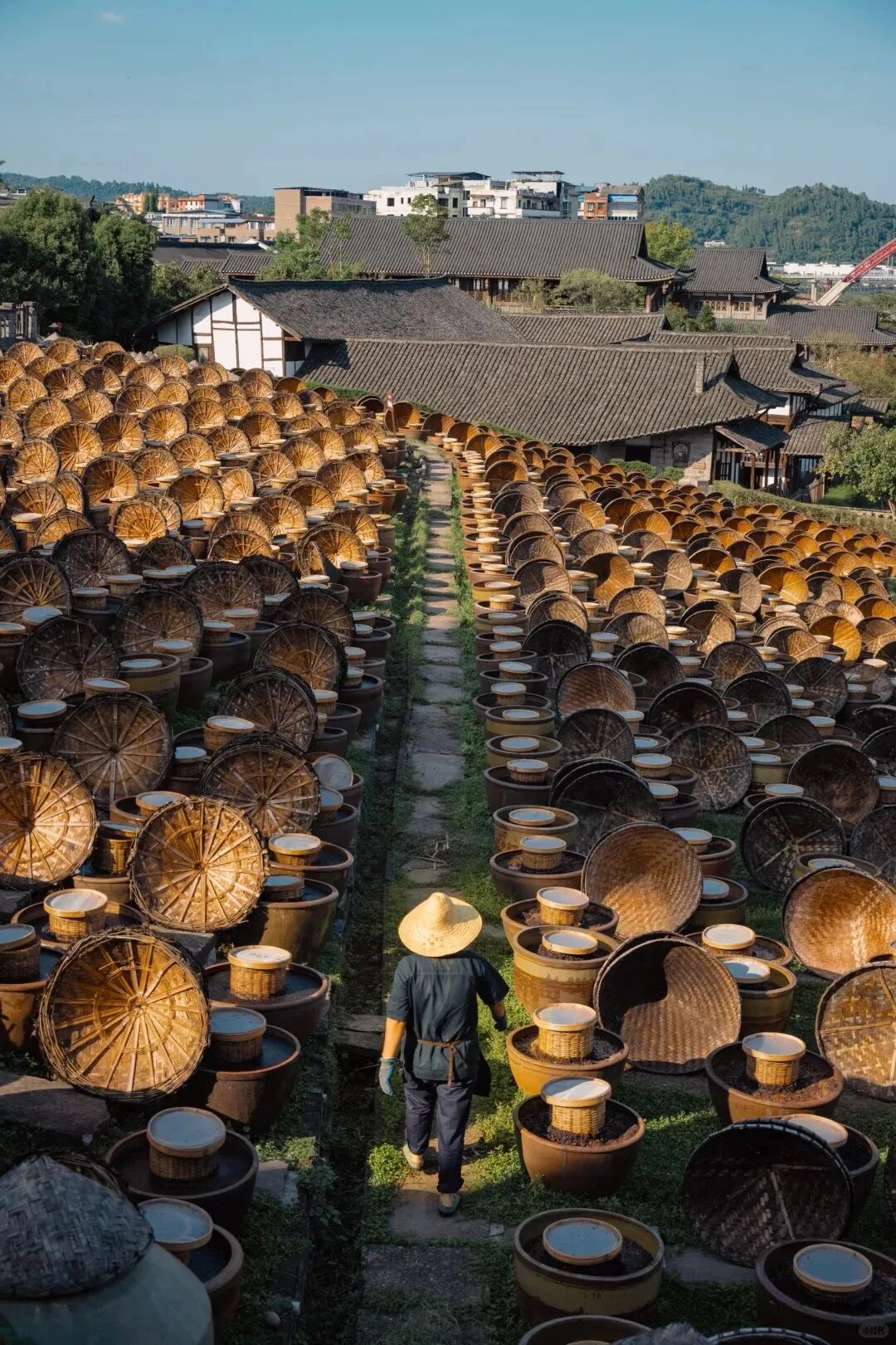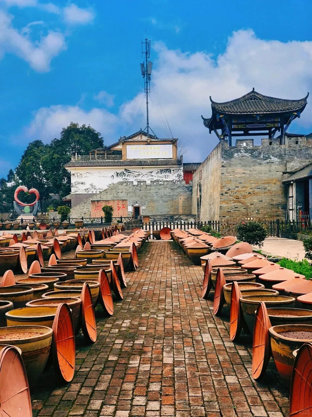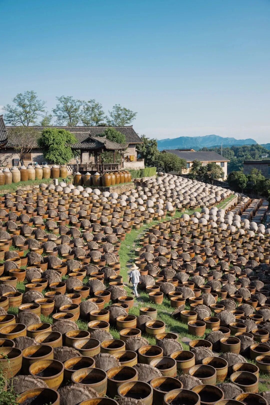 园内有6000多口晒露缸,造型独特震撼,完整保留了川南古民居的独特建筑特色,在此拍照很有大片感。
