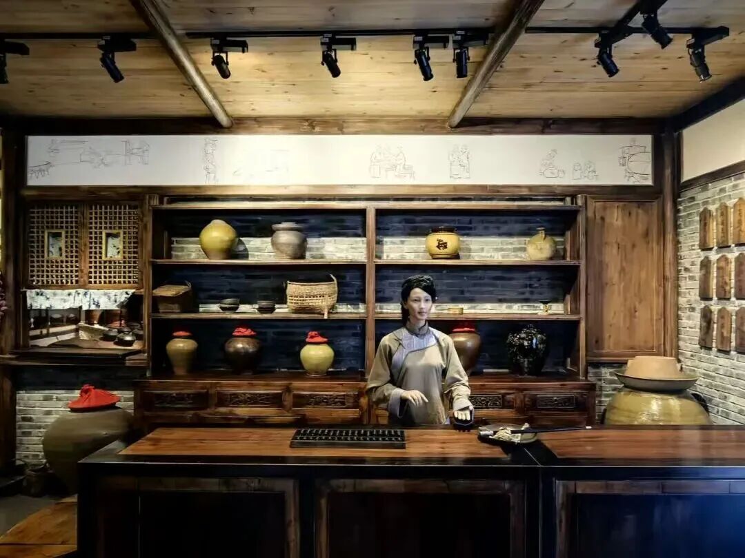 馆内整体风格古雅沉静,“前店”“后坊”的形式生动地再现了豆瓣制作的场景。
