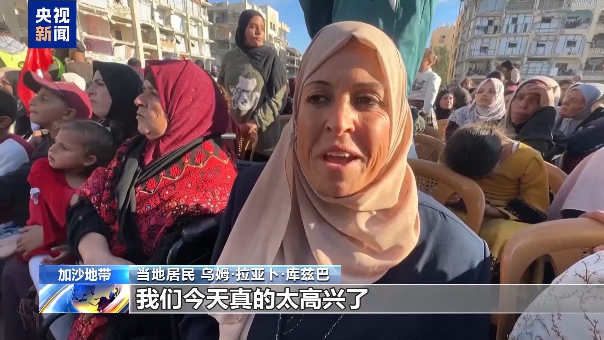 当地居民 乌姆·拉亚卜·库兹巴:我们今天真的太高兴了,这些孩子们经历了战争和杀戮,在失去亲朋、失去家园之后,终于感受到了快乐。从(加沙最南部的)拉法,到(最北部的)拜特哈嫩,对所有人来说这都是一个重要时刻。
