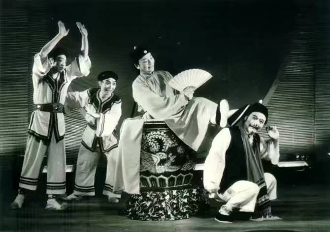 汪洋在川北灯戏《郑板桥买缸》中饰演“郑板桥”(右二)