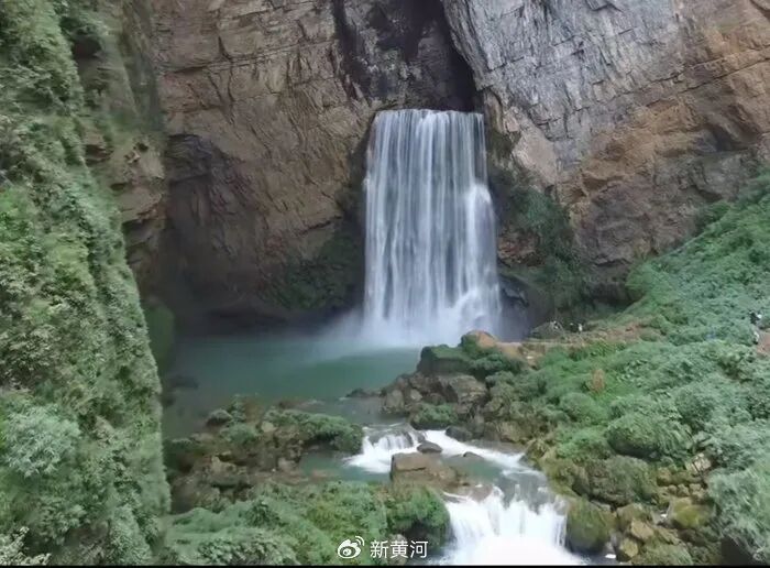 公开资料显示,羊皮洞瀑布位于贵州省清镇市暗流镇木刻村,是地下暗河出口形成的洞中瀑布,属于未开发状态。