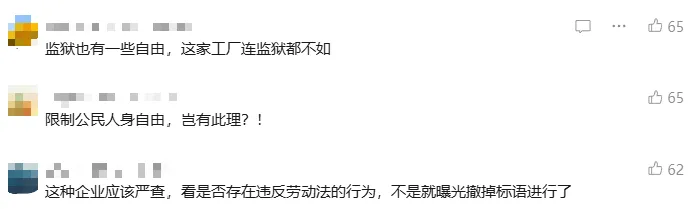 此事一经曝光便迅速引发网友广泛关注,不少网友纷纷表示,该标语是在“限制人身自由”,属于不良“企业文化”的表现。