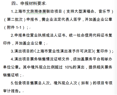 “上海商务高质量发展专项资金 文旅商体展联动项目(文旅方向)”申报材料截图。来源于随申兑平台。