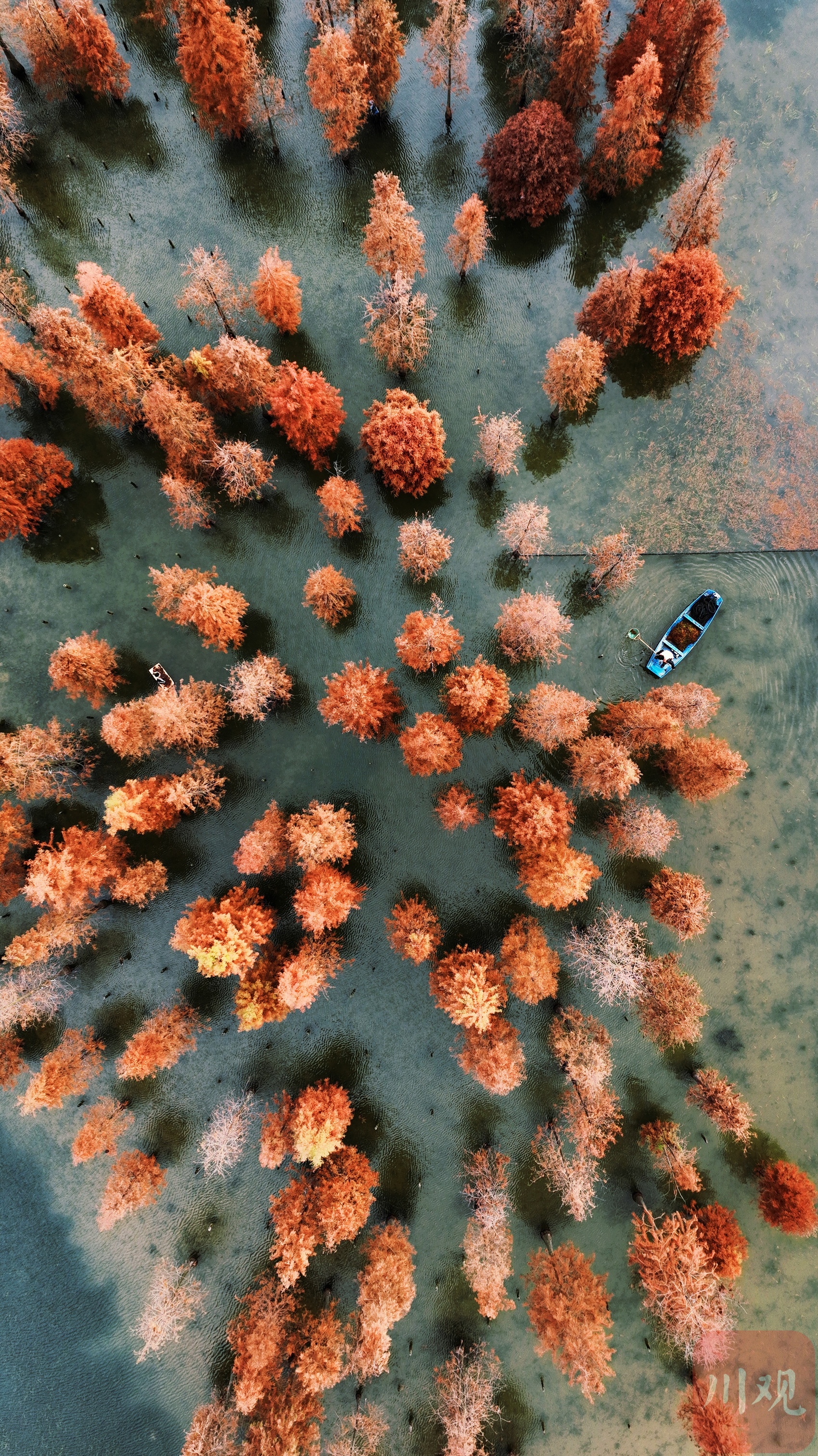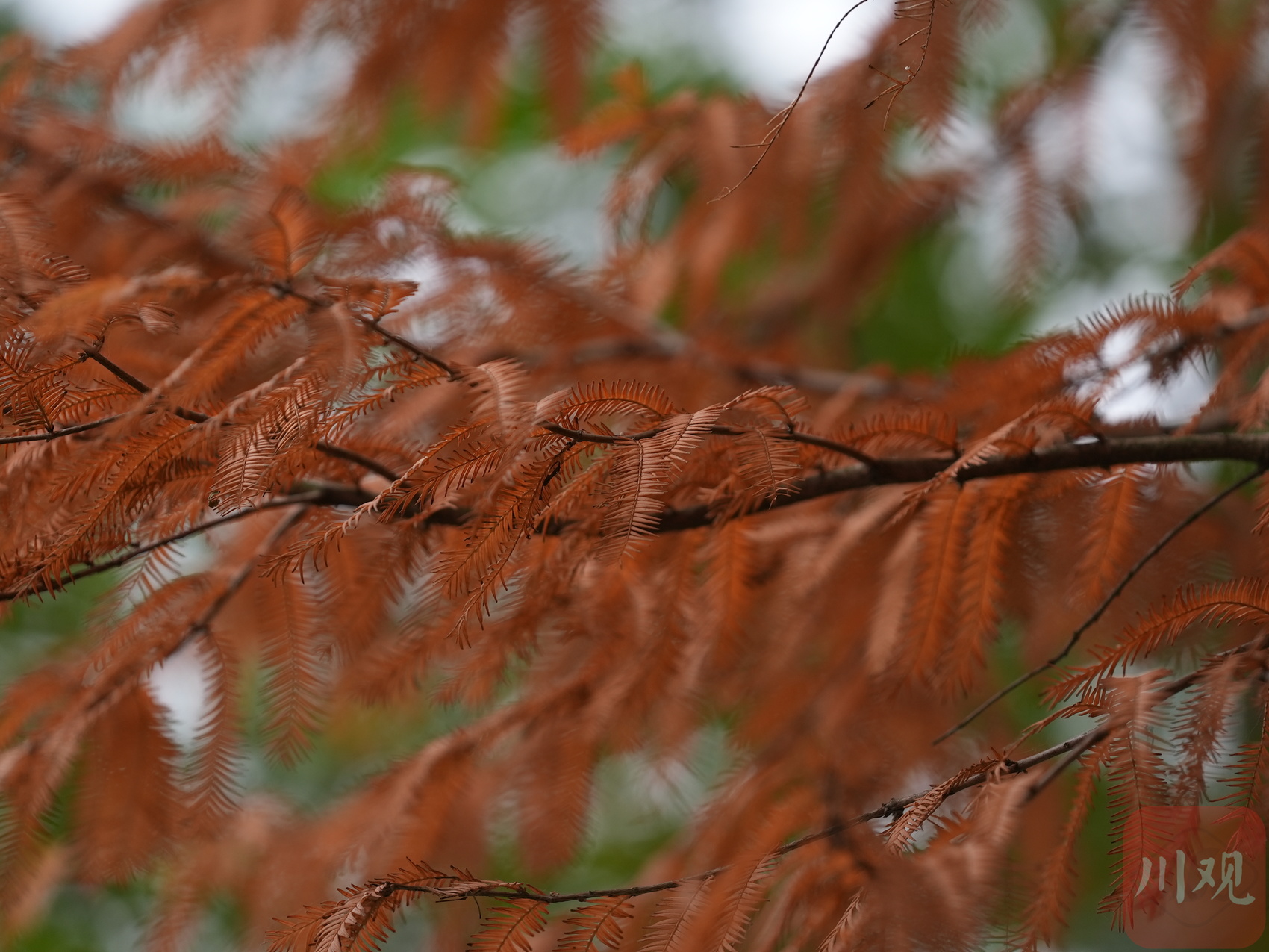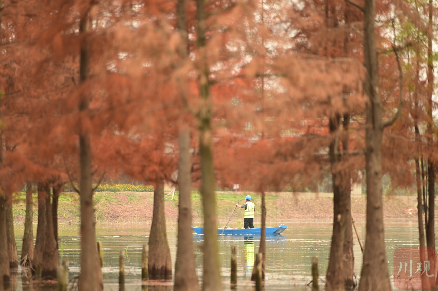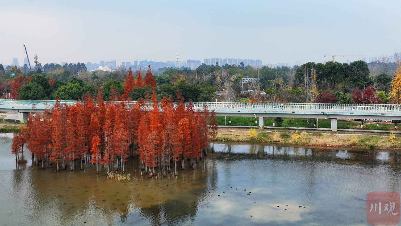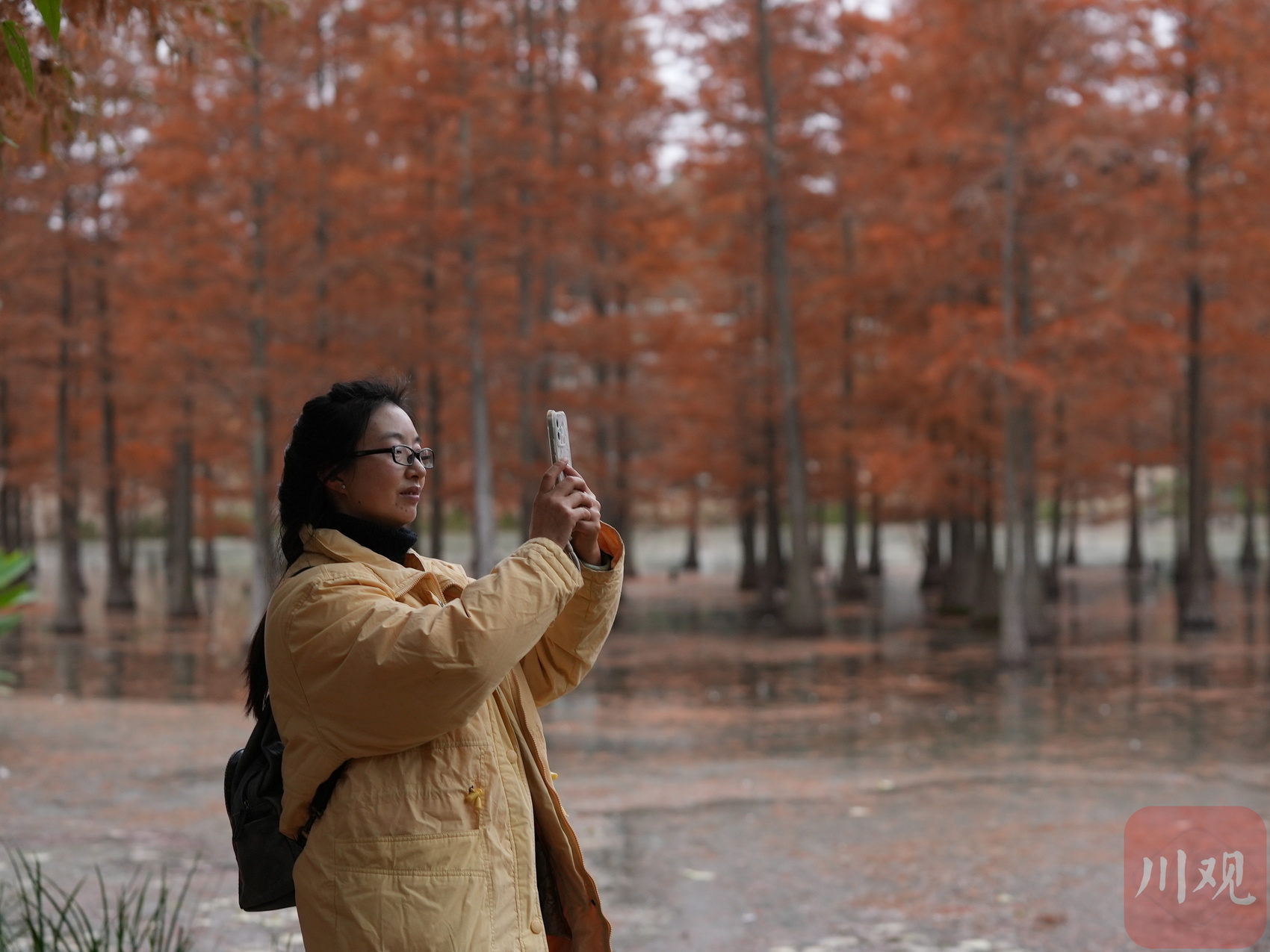 12月3日,成都白鹭湾湿地公园的水杉林悄然换上了鲜艳的冬装。