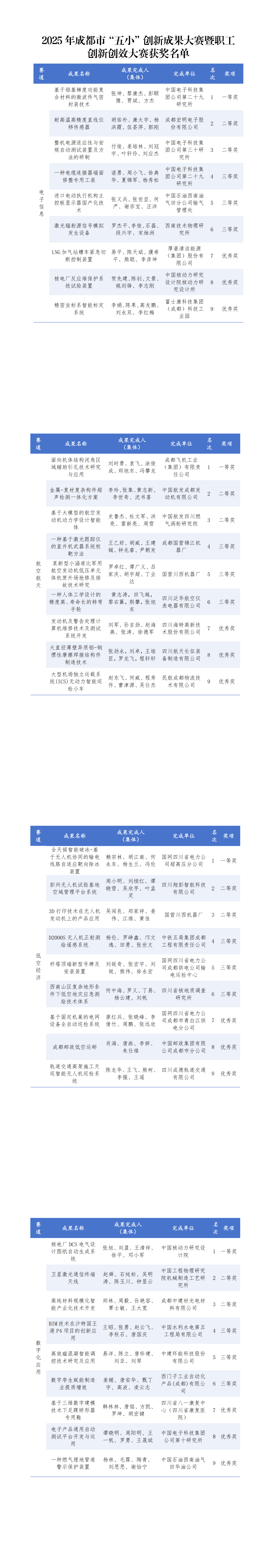 2025年成都市“五小”创新成果大赛暨职工创新创效大赛获奖名单