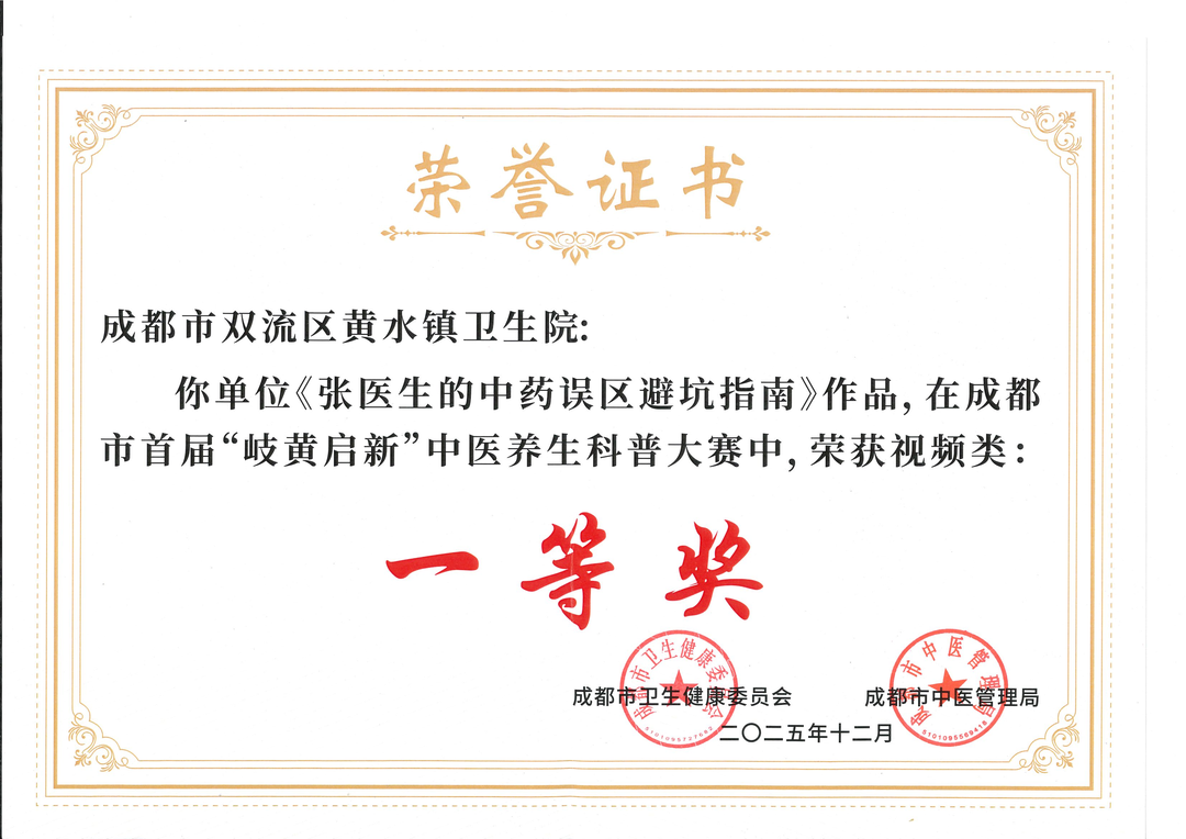 12月3日,成都市首届“岐黄启新”中医养生科普大赛表演类决赛在蓉举行。经过激烈角逐,双流区黄水镇卫生院原创出品的中医科普视频《张医生的中药误区避坑指南》在117件视频类参赛作品中脱颖而出,荣获一等奖。该作品以生动情景剧形式破解常见用药误区,展现了基层医疗机构在中医药健康传播领域的创新实践。