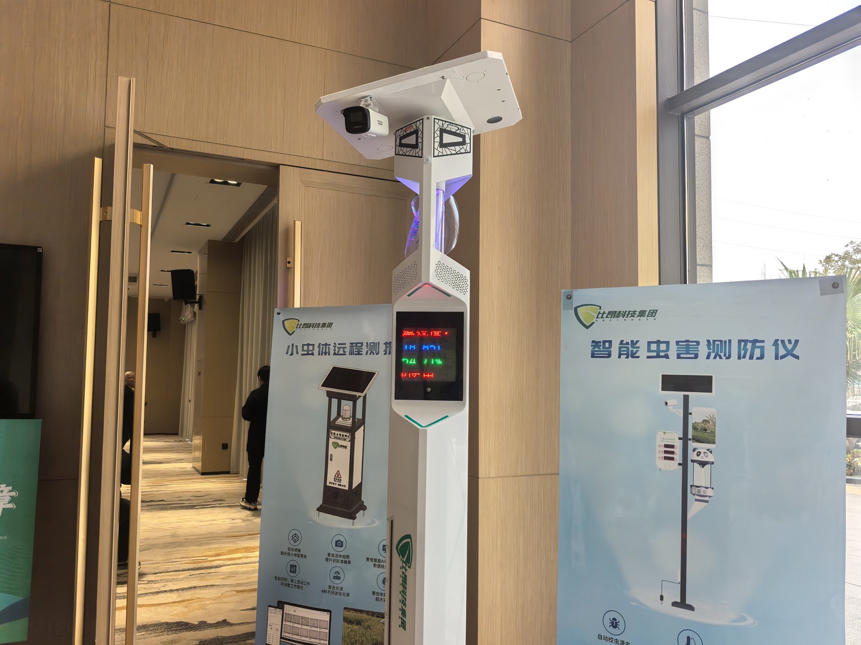 现场展示的复合式杀虫灯,可以采集墒情、苗情、虫情等数据。