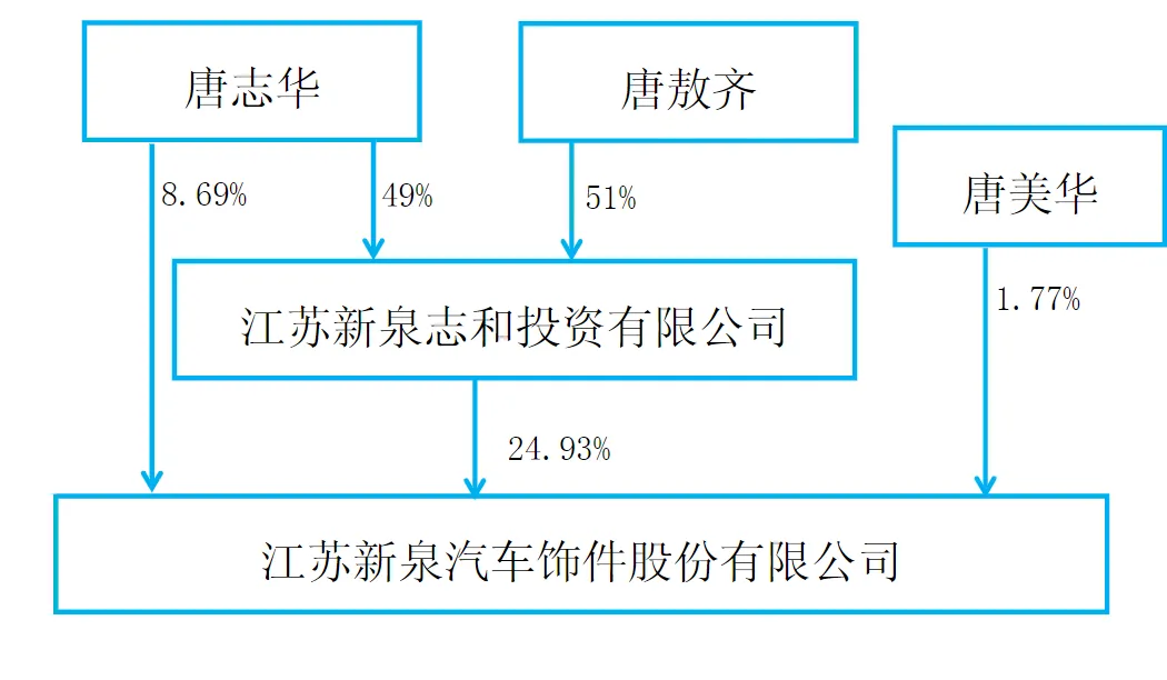 根据新泉股份公告,本次权益变动前,江苏新泉汽车饰件股份有限公司(以下简称“公司”或“新泉股份”)实际控制人为唐敖齐先生和唐志华先生父子。