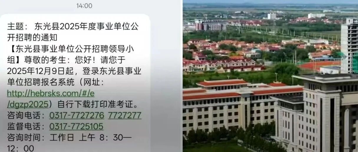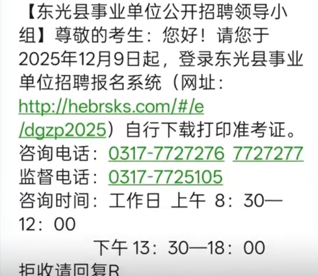 12月3日,参加2025年东光县事业编考试的考生反映接到短信通知重新参加笔试。